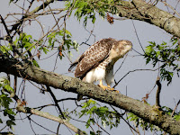 June 12: Above, young Hawk after lunch sitting in tree cooling off.